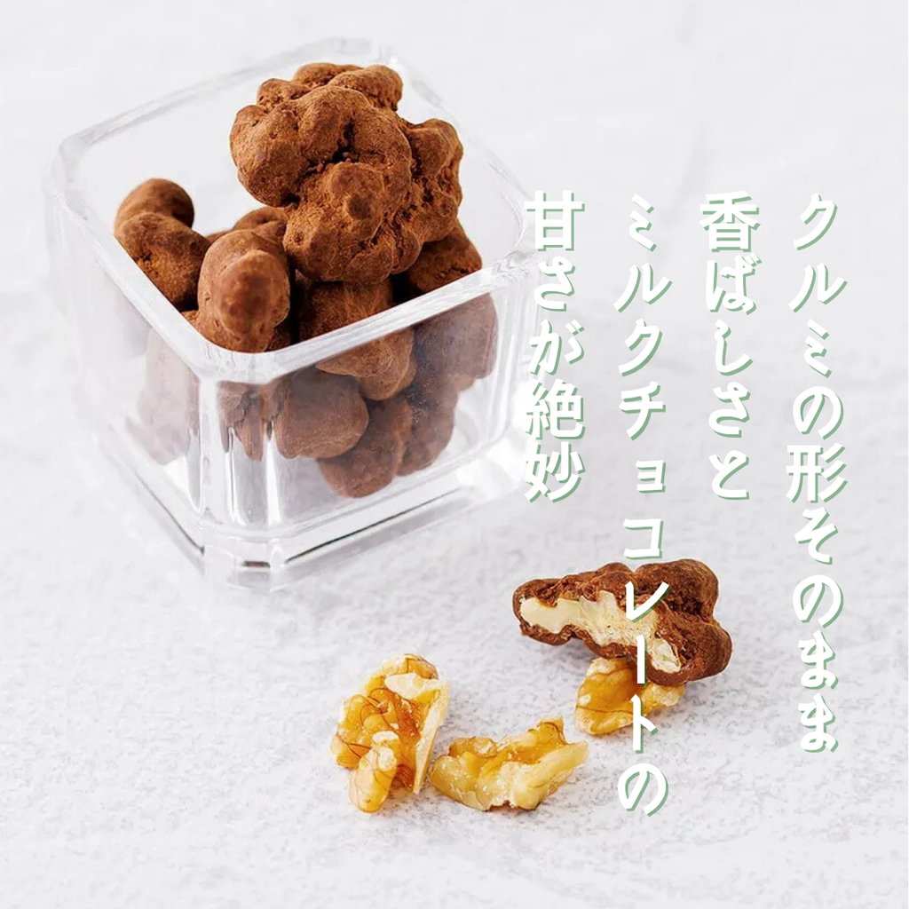 アメリカ産クルミを形そのままに、クーベルチュールのミルクチョコレートでコーティング。