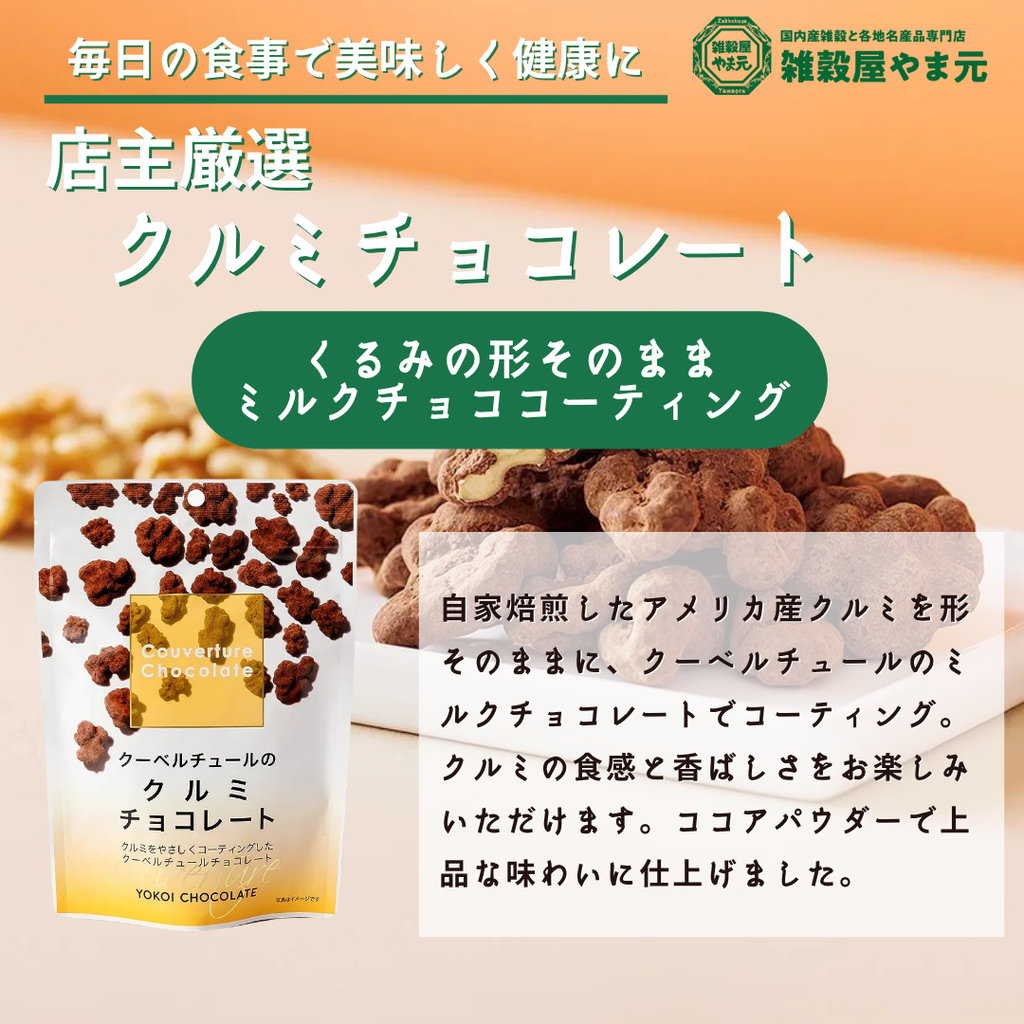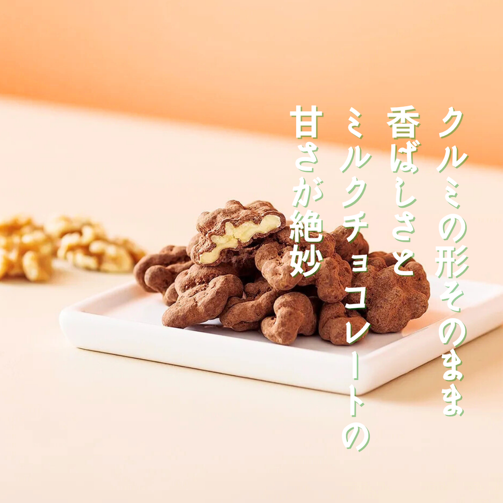 アメリカ産クルミを形そのままに、クーベルチュールのミルクチョコレートでコーティング。