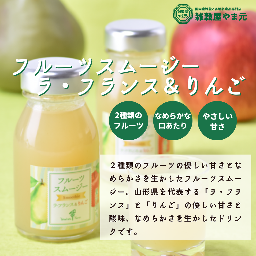 山形県を代表する「ラ・フランス」と「りんご」の優しい甘さと酸味、なめらかさを生かしたドリンクです。
