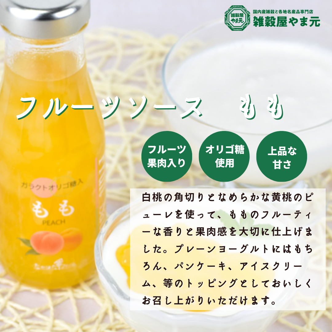 プレーンヨーグルトにはもちろん、パンケーキ、チーズケーキ、アイスクリーム、カットフルーツ等のトッピングとしておいしくお召し上がりいただけます。グラニュー糖だけでなくガラクトオリゴ糖も使用し、上品な甘さに仕上げたフルーツソースです。よく振ってお召し上がりください。
