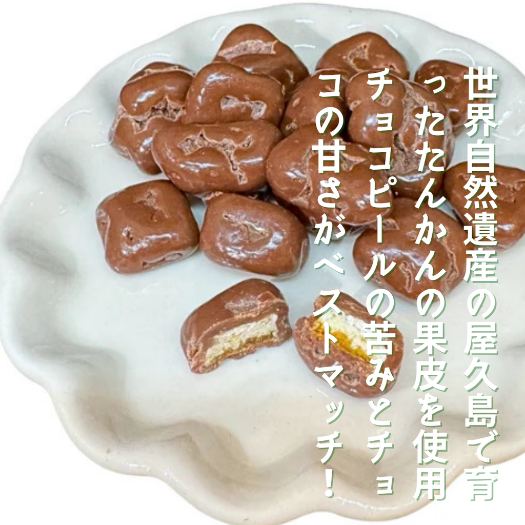 屋久島の自然豊かな土地で育った、たんかんの果皮をピールに仕上げチョコをコーティング