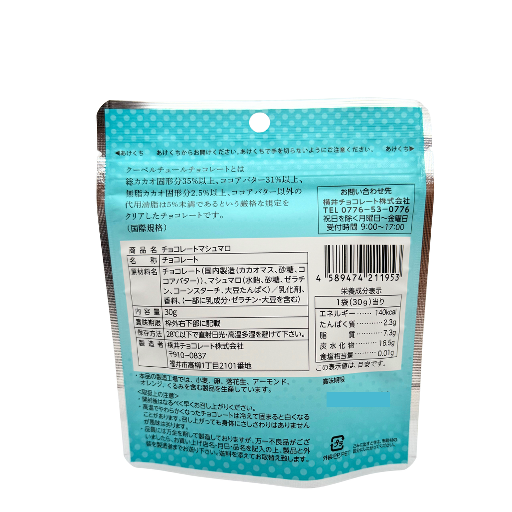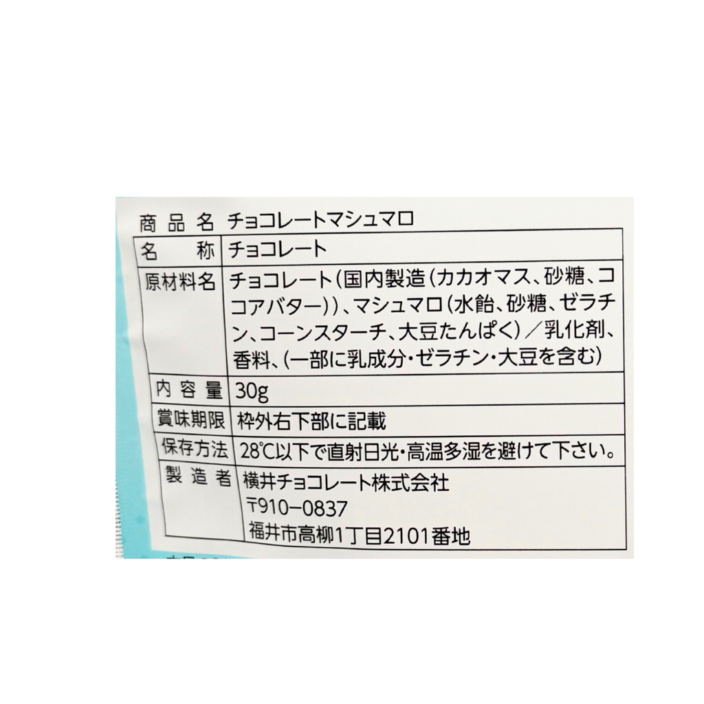チョコレート(国内製造(砂糖、ココアバター、全粉乳、カカオマス、バニラ))、清涼菓子(ぶどう糖、でん粉)/乳化剤、酸味料、香料、(一部に乳成分・大豆を含む)