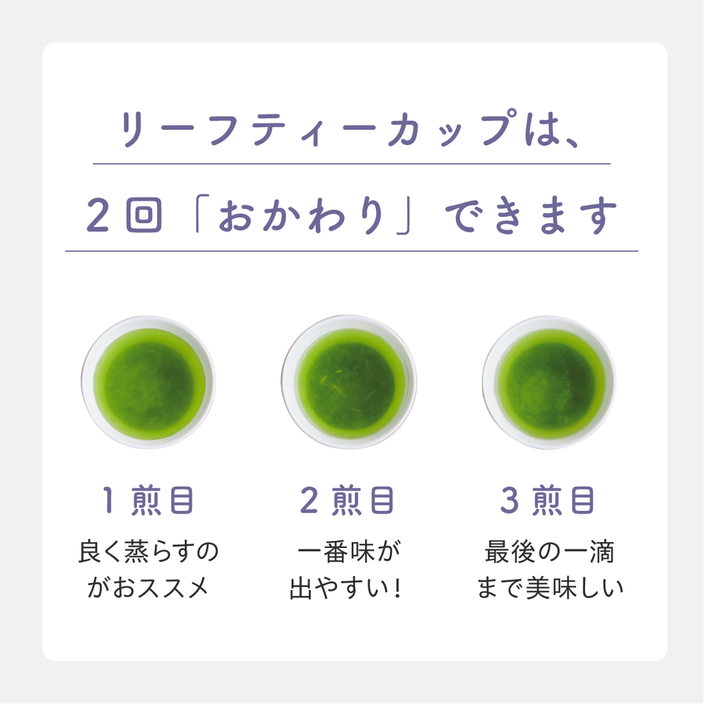 急須でいられる日本茶のように2煎目、3煎目までお楽しみいただけます。渋みの少ないマイルドな味わいの深蒸し茶です。