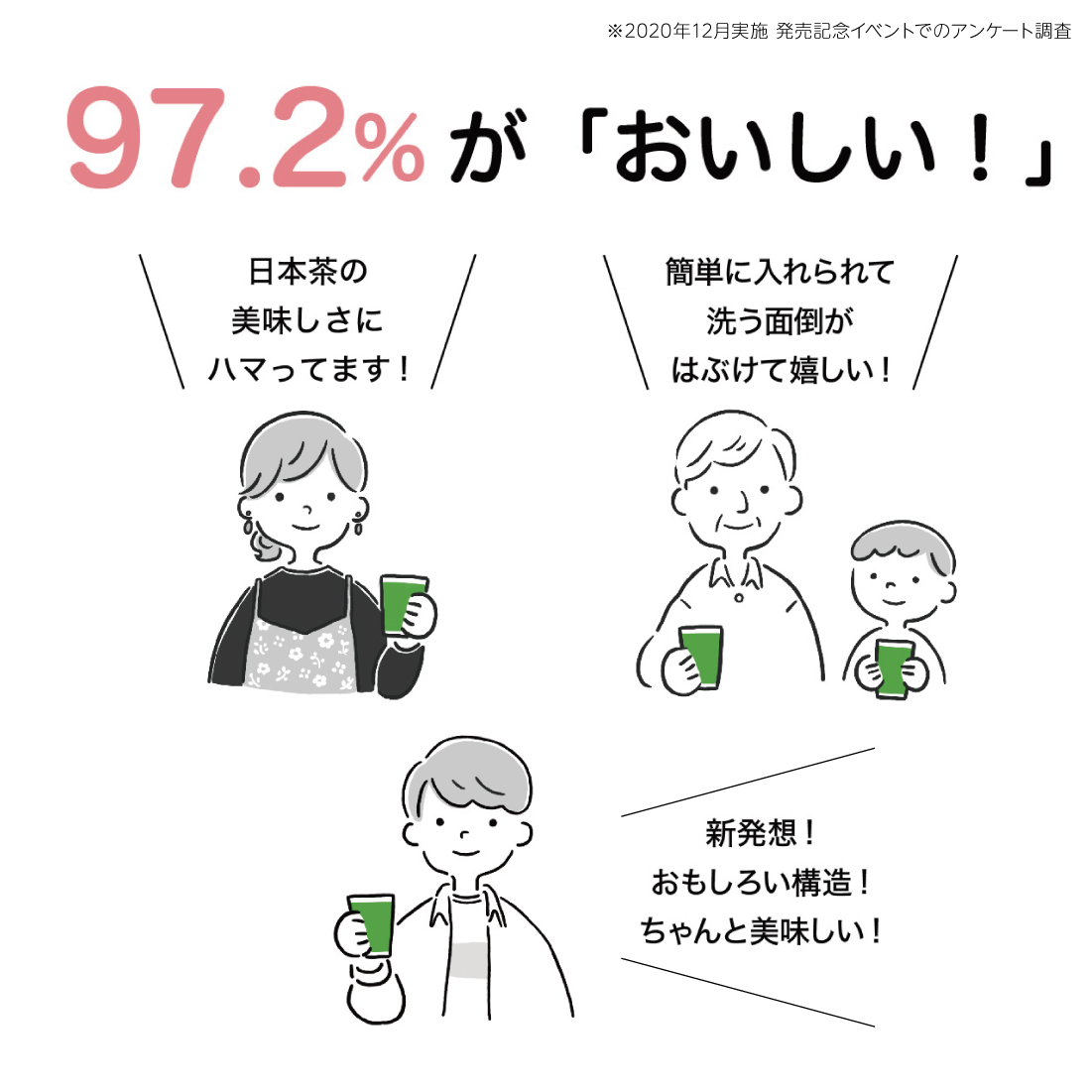茶葉とフィルターがセットされているので、お湯を注ぐだけで入れての緑茶が楽しめます。