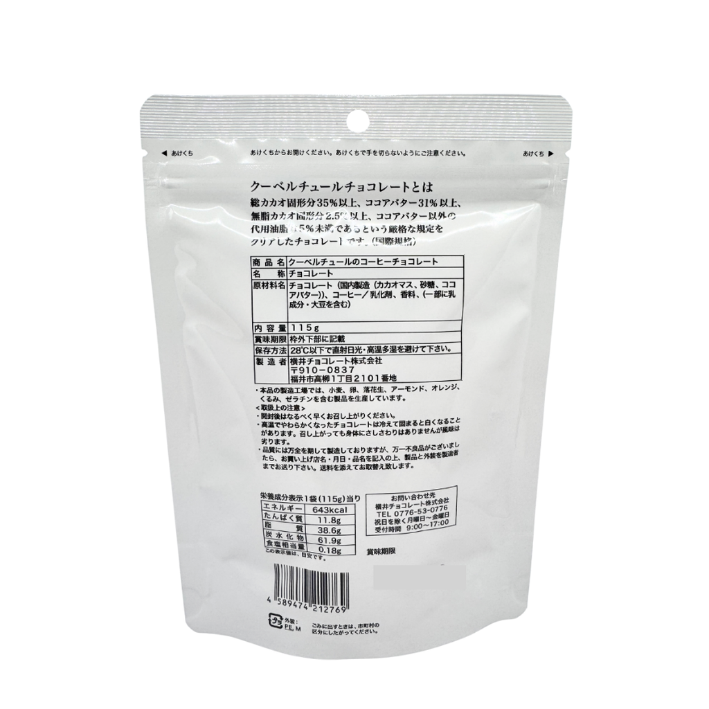 チョコレート(国内製造(カカオマス、砂糖、ココアバター))コーヒー/乳化剤、香料、(一部に乳製品・オレンジ・大豆を含む)