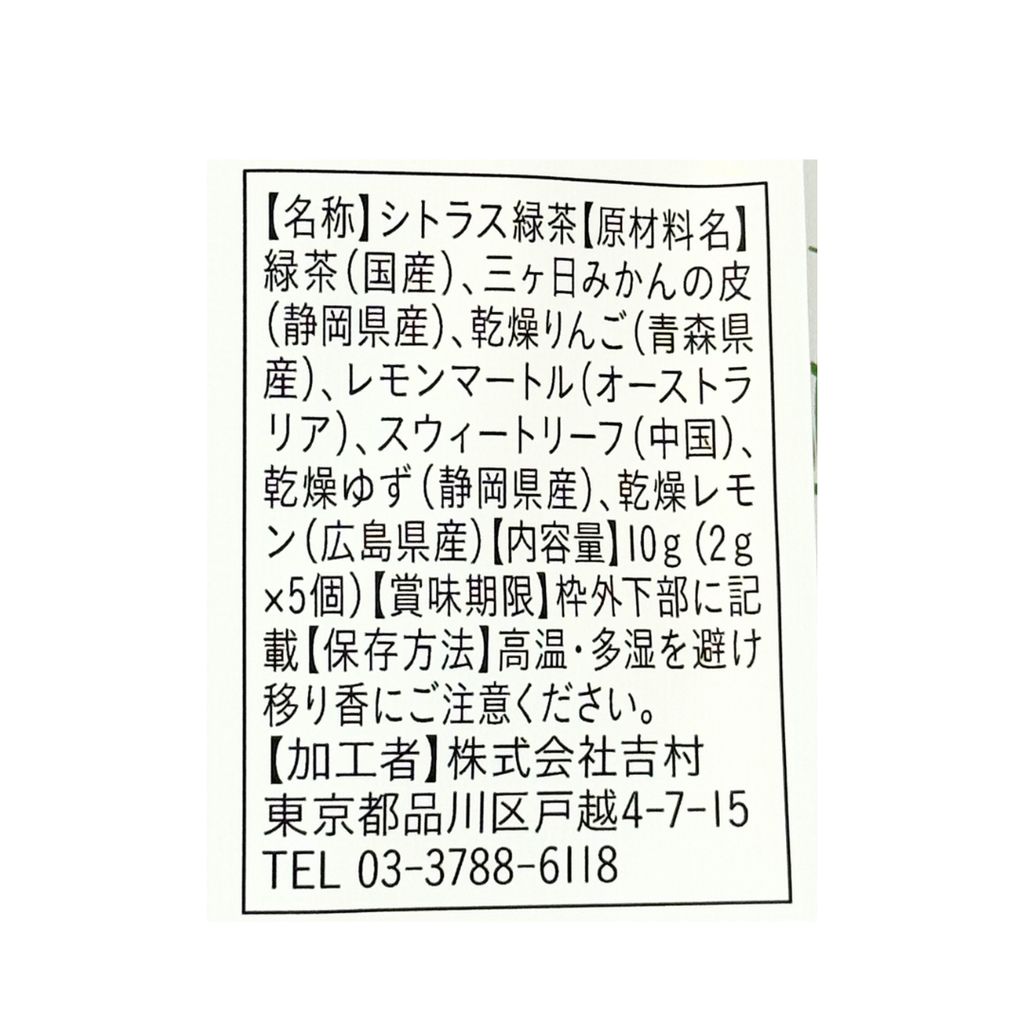 、レモンマートル(オーストラリア)、スウィートリーフ(中国)、乾燥ゆず(静岡県産)、乾燥レモン(広島県産)